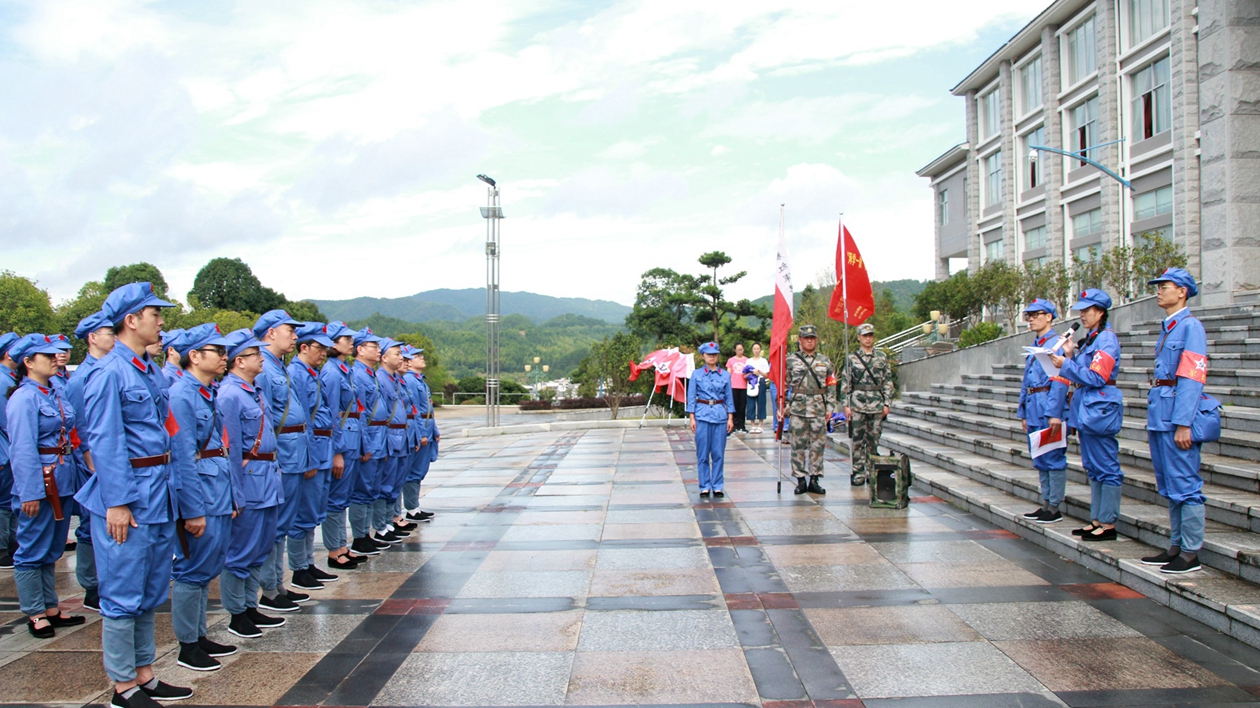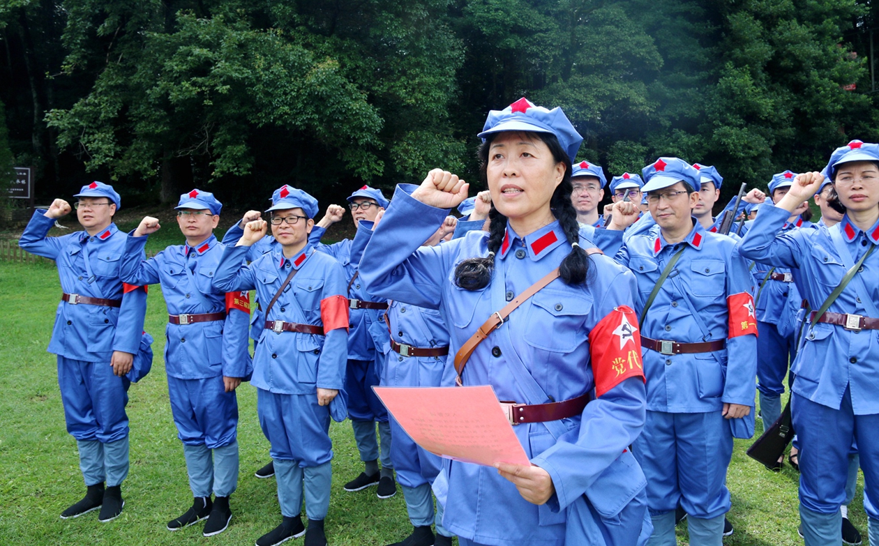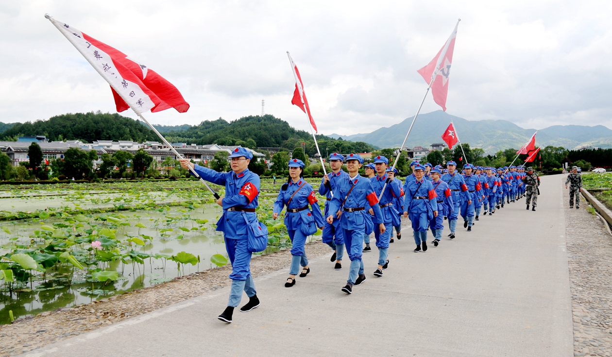 这是一次铸魂之训,培训期间,学员们身穿红军服,戴红军帽,配红袖章,跨红军包,背木步枪,穿红军鞋,进行军事化管理,按红四军建制划分四个纵队,并设置红四军党代表、军长,纵队司令、政委,鲜红的旗帜高扬在红色闽西上空,革命的壮志豪情油然而生。