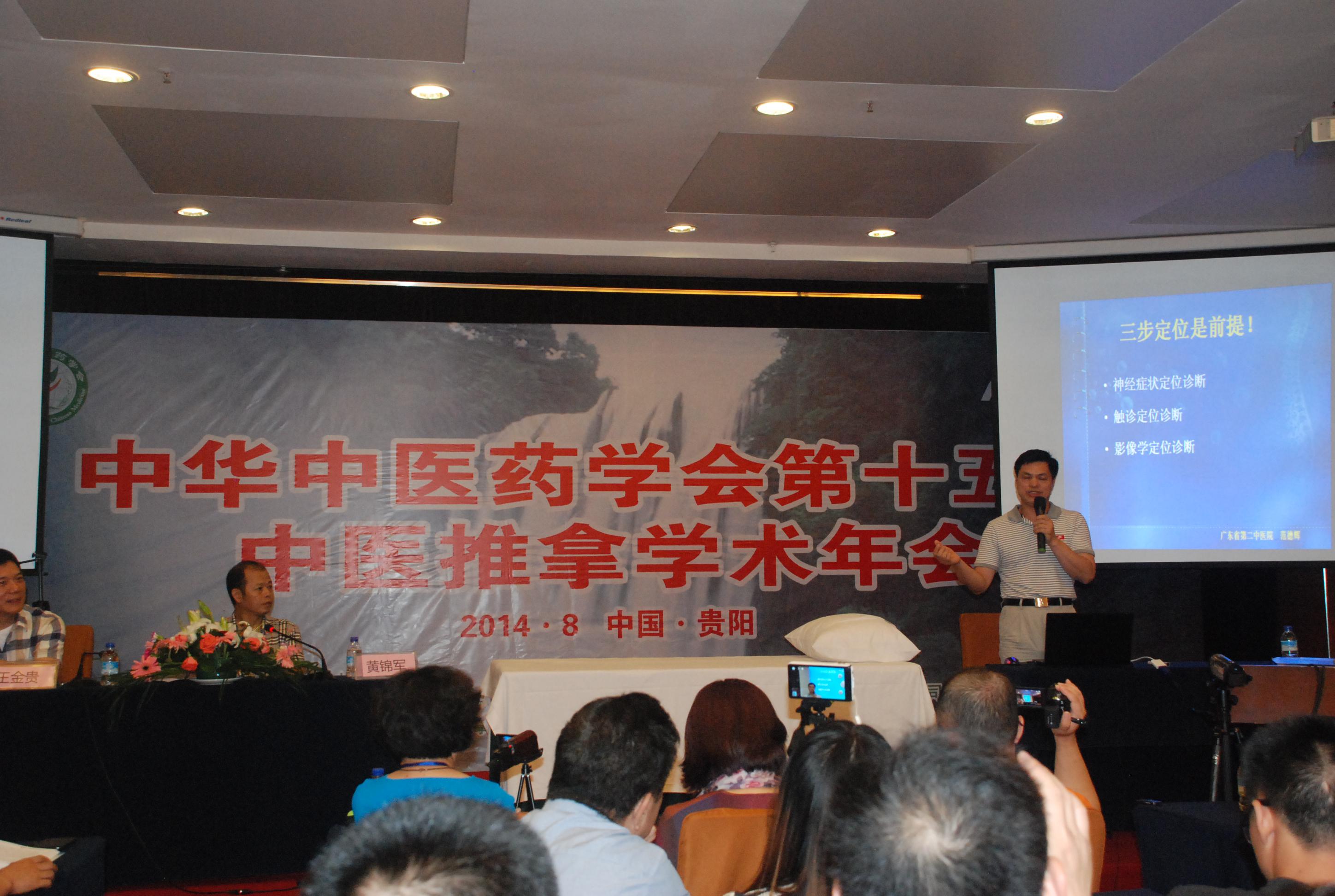 2014年8月中华中医药学会第十五届中医推拿学术年会在贵阳召开,针五医务人员代表广东省第二中医院出席年会。在大会中,来自世界各地医院的代表互相学习与交流,并弘扬来自各医院的特色手法,我院代表范德辉主任当选为新一届全国中医推拿学会委员,并选为在年会授课专家。
