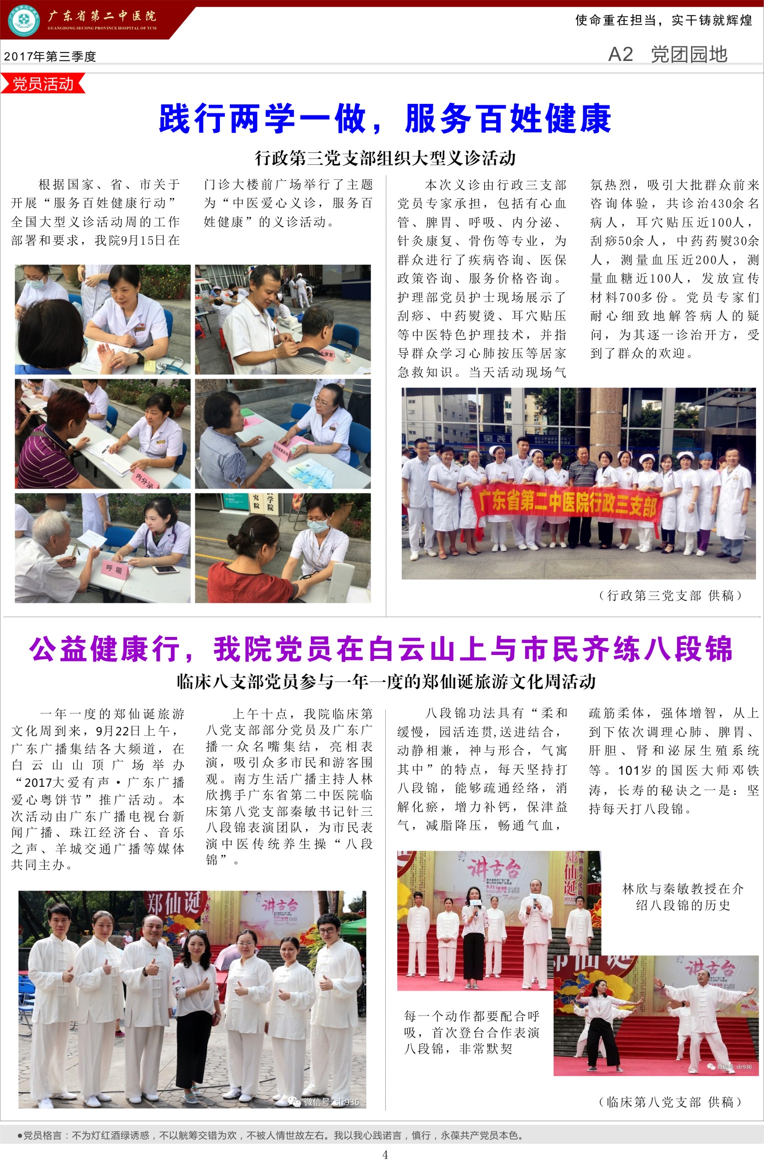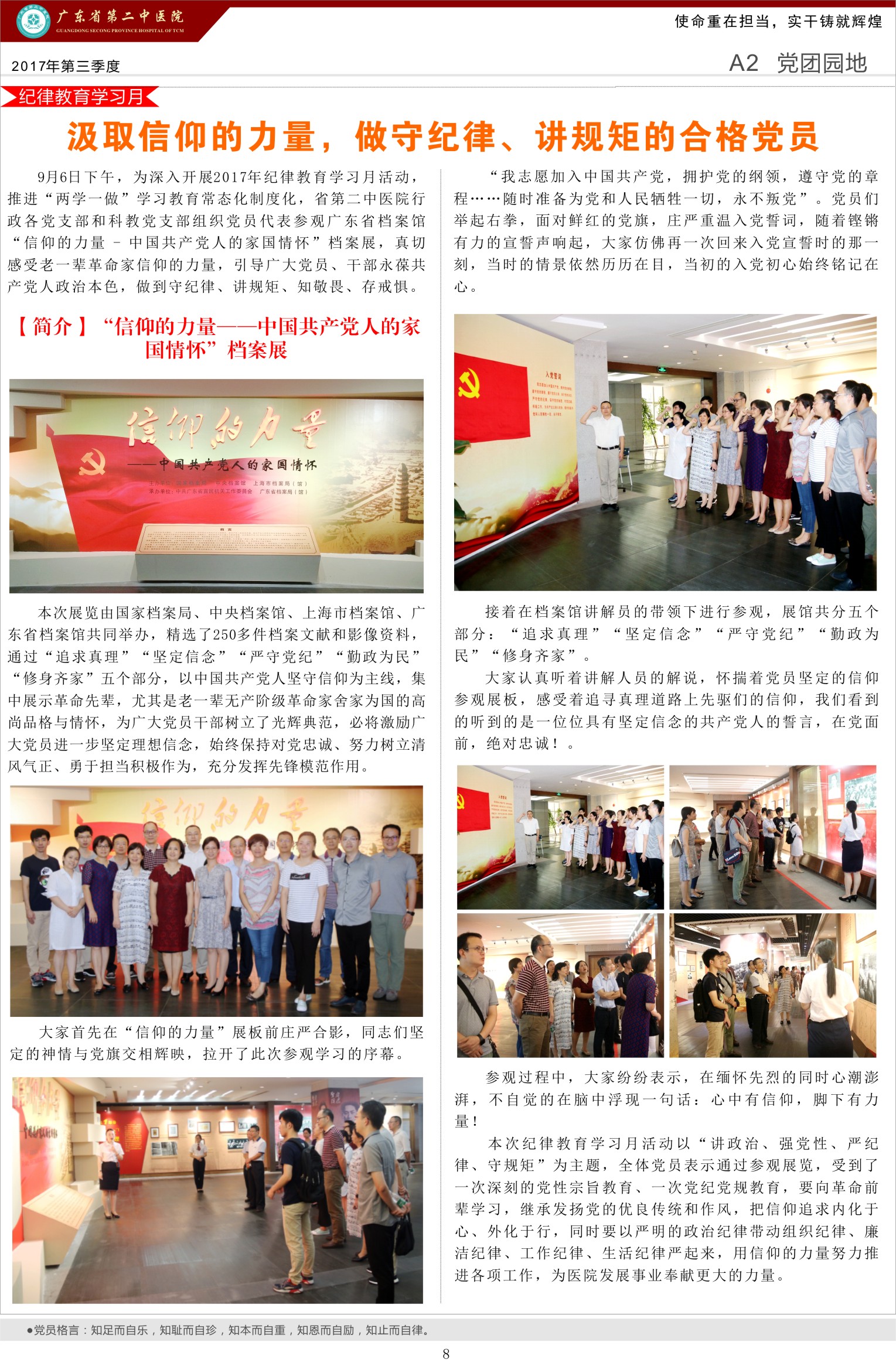 为扎实做好新形势下党建工作,我院积极探索党建宣传的有效载体,创办党建专刊“党员风采”,努力打造“抓党建促发展”工作品牌。《党员风采》通过宣传医院在党建工作中开展的活动和取得的成效,展现党员、群众积极向上的精神风貌,推动医院党建工作迈上新的台阶。