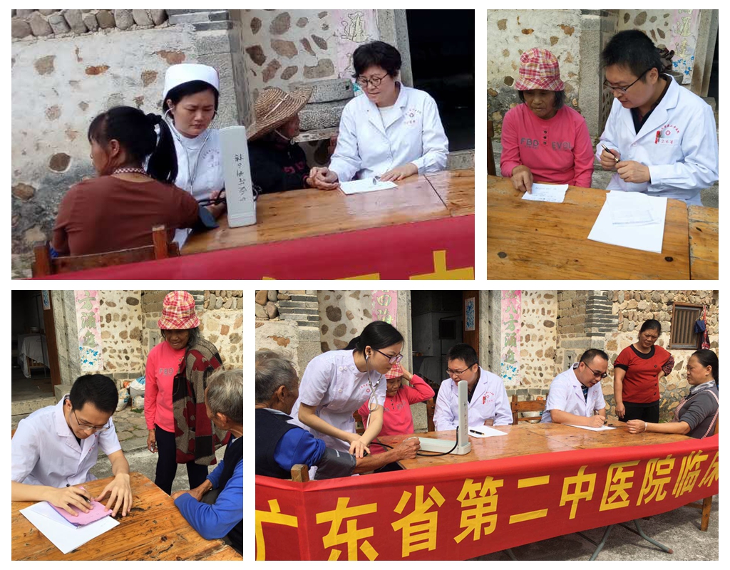 党的十九大提出要完善国民健康,为人民群众提供全方位健康服务,所有的共产党员要牢记自己的使命,不忘初心跟党走。为深入学习宣传贯彻党的十九大精神,发挥党员模范带头作用,塑造党员良好形象,提升服务能力,2017年11月12日我院临床第一党支部在靳利利书记的带领下,支部一行11人前往韶关市新丰县梅坑村开展党员爱心义诊活动。