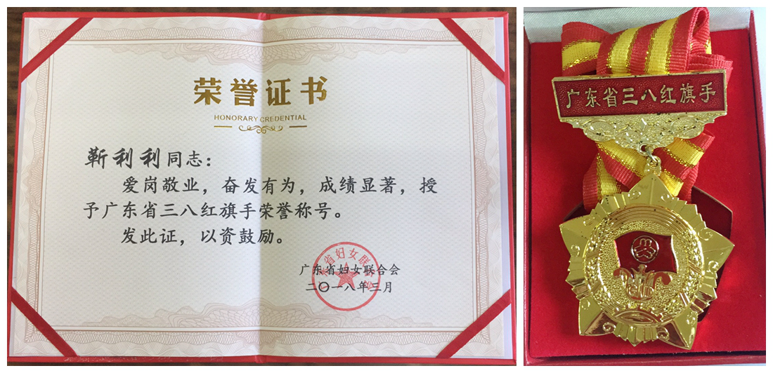 “广东省三八红旗手”是省妇联为表彰先进,树立榜样,引导和激励广大妇女见贤思齐,建功立业而授予的在各条战线上作出杰出贡献的个人荣誉。靳利利教授在平凡的岗位上做出了不平凡的业绩和贡献,被授予该奖项,是对其辛勤工作以及在工作中所取得巨大成绩的充分肯定。