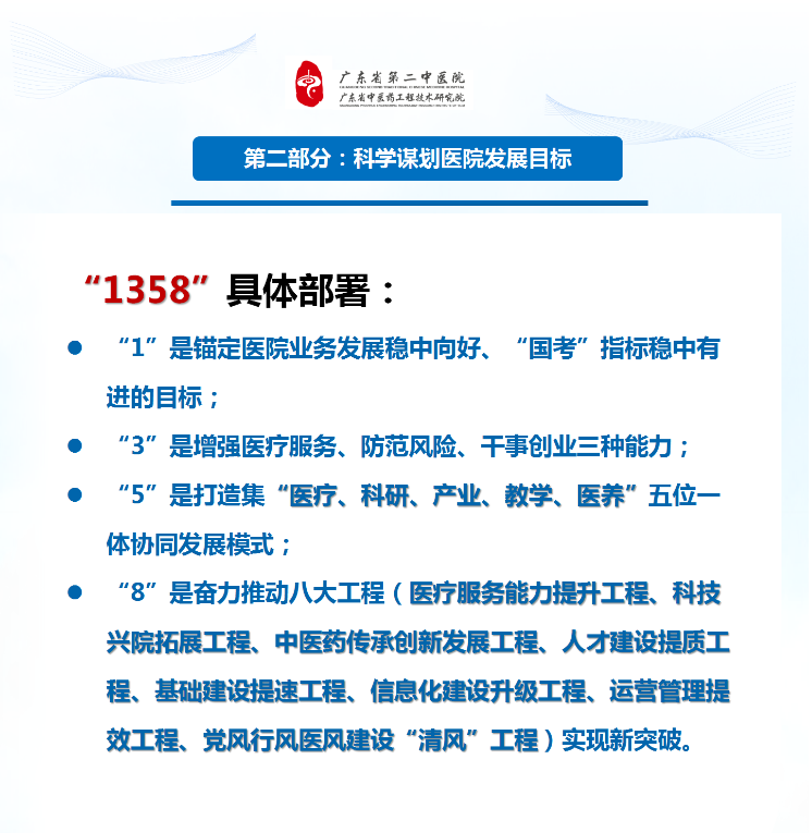 3.实施中医药传承创新发展工程,打造医院发展新高地。加快推动黄埔医院新大楼启用和旧楼改造;拓展新的医疗用地,建设广东省医养结合服务中心;将中医康复杂志打造成为核心期刊。