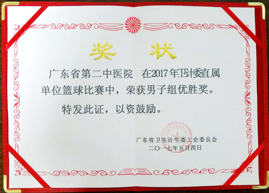 5月4日,2017年度广东省卫生计生委直属单位篮球赛在历时一个月的紧张激烈比赛后落下了帷幕,来自不同单位的16支代表队参加了比赛,我院代表队在本次比赛中团结协作、积极进取、奋勇拼搏,取得了男子组优胜奖的好成绩。我院参赛选手们秉持“友谊第一、比赛第二,重在参与、重在提高”的宗旨,用他们的技术和实力为我们带来了一场场酣畅淋漓的比赛。