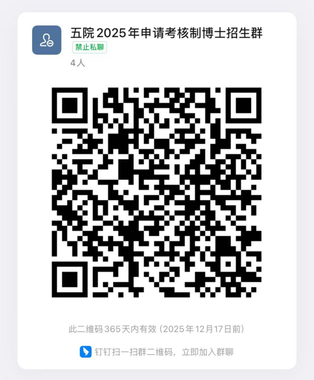 请考生扫描以下钉钉二维码加入复试工作群(群号:XXX)。入群备注:考生编号-姓名,无备注无法通过入群申请(注意:24小时内仅能申请入群一次,务必按照要求备注!)。导师联系方式将在群内公布。公布后请及时联系报考导师进行面谈。面谈可采取线下或线上方式进行,具体方式和面谈时长由导师确定。