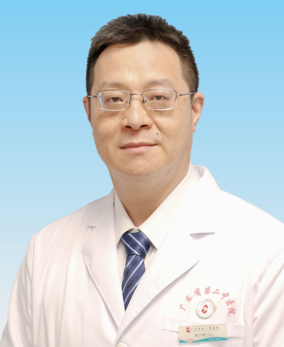 吴少鹏教授, 骨伤骨三科负责人、主任中医师、硕士研究生导师,1995年广州中医药大学毕业,一直于广东省第二中医院骨科工作,担任临床、教学、科研工作。擅长运用中西医结合方法诊治颈椎病、腰椎间盘突出症、腰椎滑脱症、腰椎管狭窄症、关节、创伤疾患,尤其专长脊柱疾病的诊治和微创方法治疗。曾于龙川县中医院任副院长挂职锻炼一年,主持参与专科课题多项,发表论文二十余篇。系广东省中西医结合学会脊柱医学专业委员会副主任委员、广东省中医药学会脊柱病专业委员会副主任委员、世界中医药联合会骨伤科专业委员会常务理事、广东省医疗行业协会骨质疏松管理分会常务委员、广东省中西医结合学会骨伤科专业委员会常务委员。2012年、2021年和2023年分别接受国家、广东省的GCP培训并获得证书。
