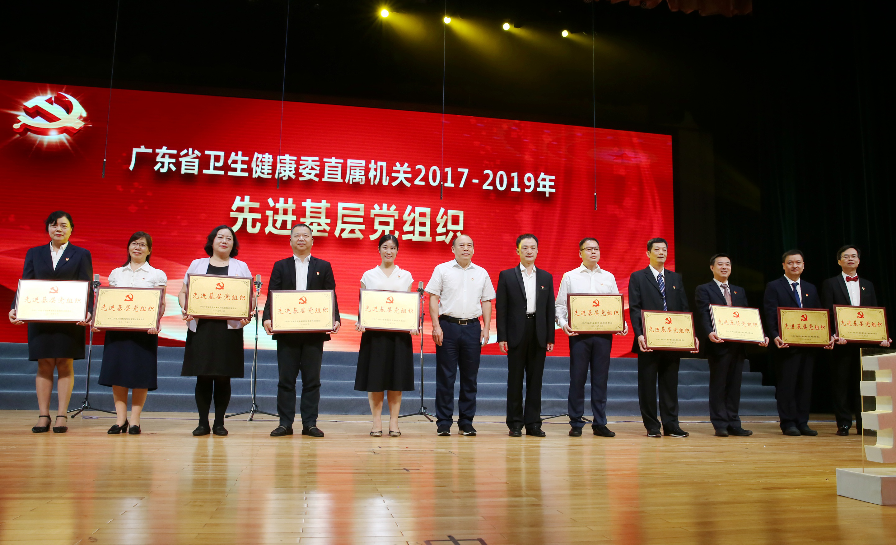 活动开始,省卫生健康委对荣获委直属机关2017-2019年度先进基层党组织、优秀共产党员、优秀党务工作者进行表彰。我院行政第三党支部、临床第四党支部荣获荣获“广东省直属机关先进基层党组织”荣誉称号;罗霄山、钟力、林晓洁3位同志荣获“优秀党务工作者”称号;范烁楠、聂斌、叶远芳、詹文英、周敏、余德钊、秦敏、黄小丽、吴玉玲、李桂明、董玉娟、黄雪君12位同志荣获“优秀共产党员”称号。我院行政第三党支部书记黄琳作为“广东省直属机关先进基层党组织”获奖代表上台接受委领导的颁奖。