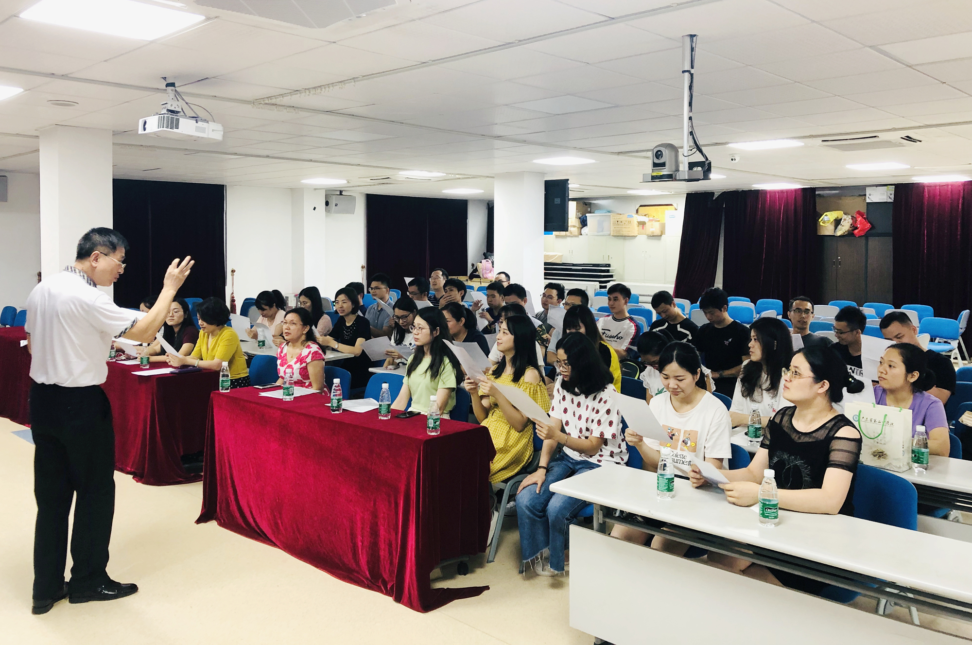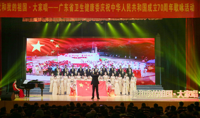 7月23日,我和我的祖国·大家唱—广东省卫生健康委庆祝中华人民共和国成立70周年歌咏活动在广州隆重举行,在我院党委书记、院长曹礼忠的带领下,党委委员、副院长丘友如和50名党员干部职工以昂扬的斗志、饱满的热情,振奋的精神参加活动,深情演绎爱国歌曲《向往》,唱出了人民对幸福美好生活的向往,对伟大祖国的美好祝愿。