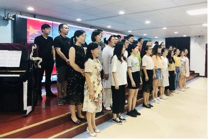 歌咏活动自6月份启动以来,我院党委高度重视,各科室积极参与,党办积极组织筹划,从各个科室精心挑选,最终组建了一支50人的合唱团队,并聘请业务精湛的音乐教师对节目编排进行专业性指导。近1个月来,队员们克服倒班、夜班等困难,牺牲了休息时间,积极参与,认真排练。
