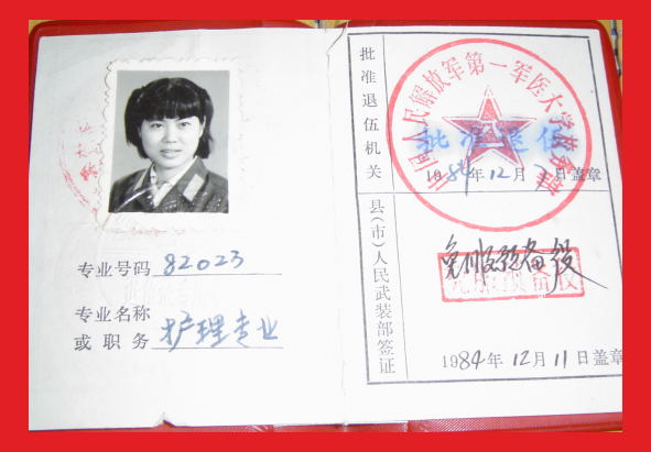黄埔医院中心药房陈丽花同志:1984年服役。