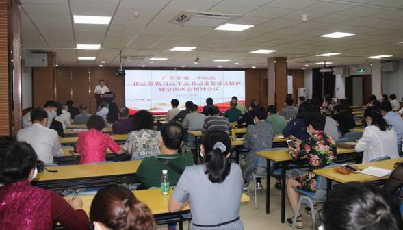院领导、各科室主任、区长、护士长共一百余人参加会议,白云院区、黄埔医院职工通过同步视频参加会议。