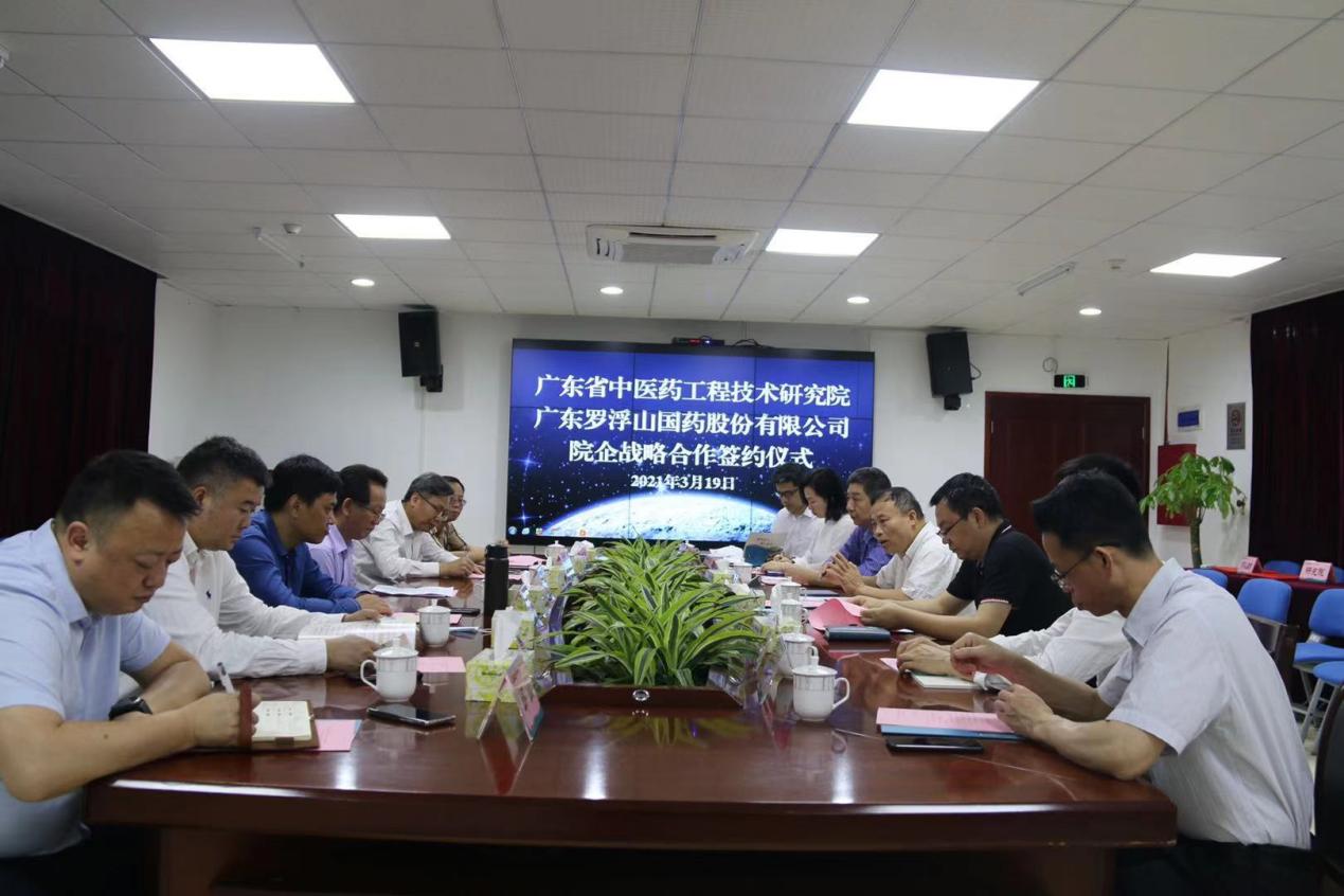 3月19日上午,研究院与广东罗浮山国药股份有限公司举行院企战略合作协议签约仪式,双方将在中医药科技创新、成果转化、人才培养和文化建设等领域开展深入合作。出席签约仪式的有我院党委书记、院长曹礼忠,党委副书记、纪委书记黄桃园,罗浮山国药董事长叶耀良、总工程师廖志钟,罗浮山国药院内制剂开发有限公司总经理刘璞等。