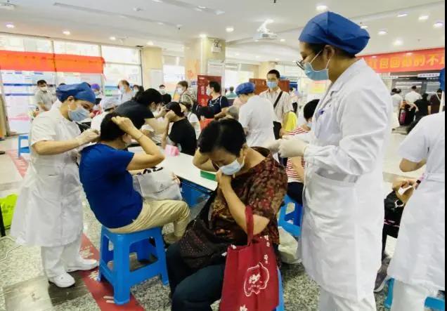 义诊活动包括健康科普知识宣传,腕踝针、皮内针、耳穴疗法、刮痧、牛角罐、穴位按摩、艾灸、杵针等中医护理技术体验活动,现场气氛热烈,前来咨询体验的群众络绎不绝,护理专家们以饱满的热情接待每一位前来体验的群众,受到群众热烈欢迎。当天义诊活动累计服务群众近300人次。