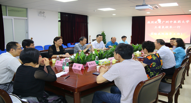2015年4月29日,广州中医药大学王省良校长带队,校办公室、教务处及针灸推拿学院等部门领导一行9人,对我院临床医学院建设及临床教学工作进行调研、指导。