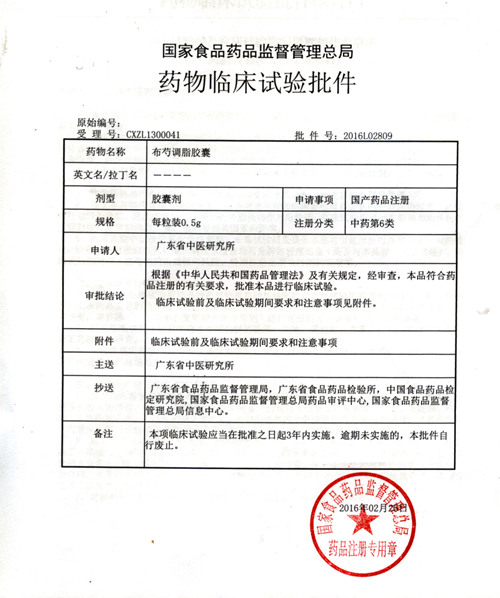 近日,由广东省第二中医院(广东省工程技术研究院)科研团队自主研发的中药六类新药“布芍调脂胶囊”及委托开发新药“亨昌戒毒瘾胶囊”同时获得国家食品药品监督管理总局颁发的“药物临床试验批件”,批准进入临床试验,标志着我院药学研究团队在中药新药创制方面的研究工作取得关键性进展,对于推动我省中医药自主知识产权的开发具有重要意义。