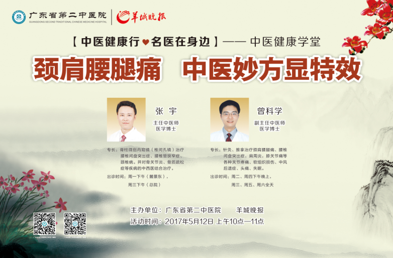 5.12中医健康学堂携手羊城晚报健康大讲堂开课了!颈肩腰腿痛,中医妙方显特效 ,快来参加吧!