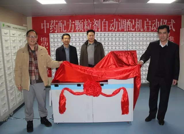 签约仪式结束后,邹小广院长、凯塞尔·阿不都吾甫尔书记、许学猛副院长、孙宝山副主任及王怀振副院长一行前往该院中药房,举行了我院赠送“中药配方颗粒剂自动调剂装置”的启动仪式。